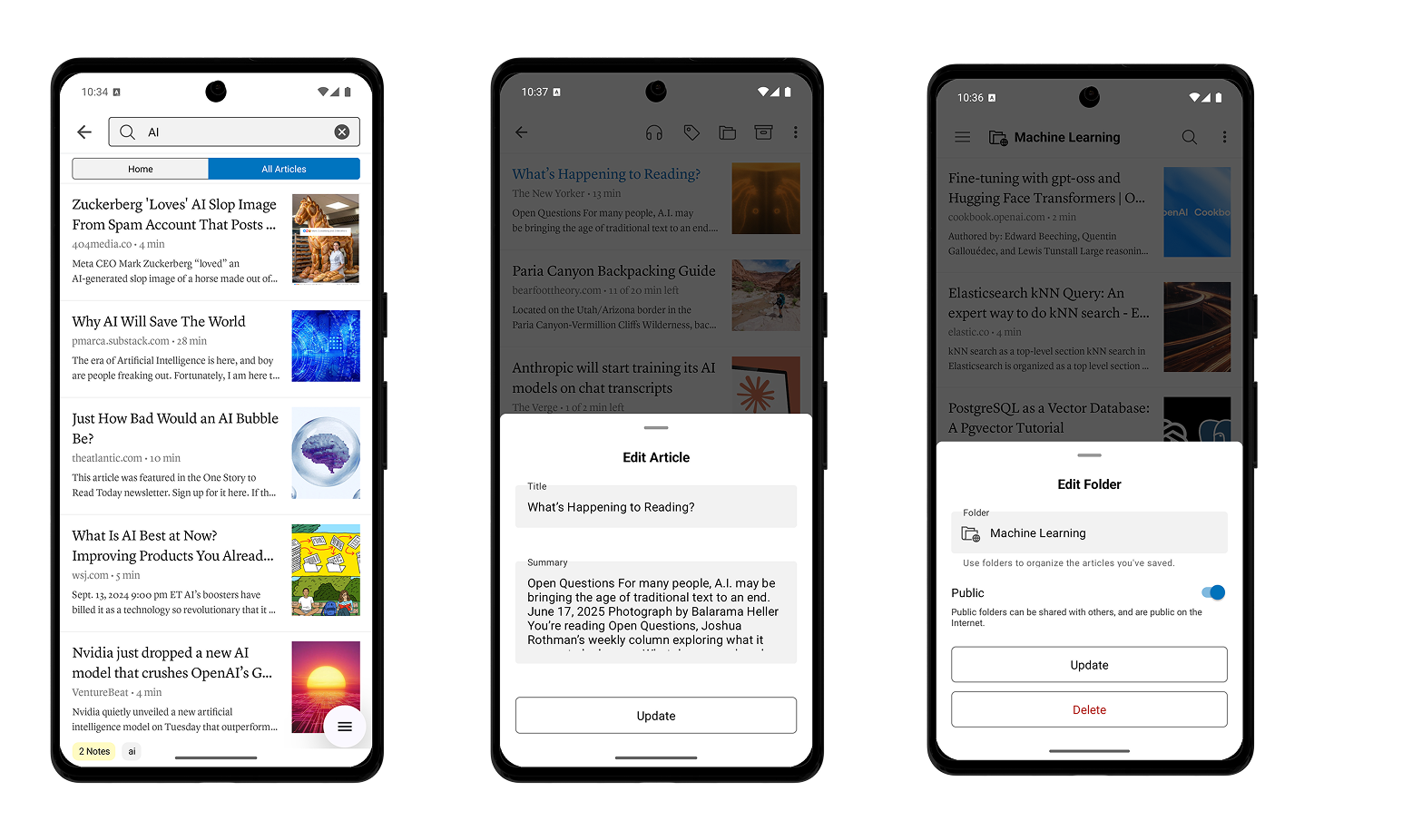 • Article Editing: Edit article titles and descriptions by long-pressing an article > Tap “…” > Tap “Edit”.